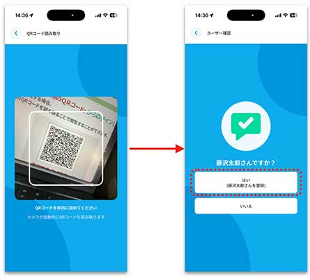 ご利用者様に間違いがなければ「はい」をタップしてください