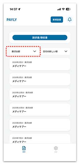 1. PAYLYを立ち上げて表示される一覧画面に表示されているお名前をタップしてください。