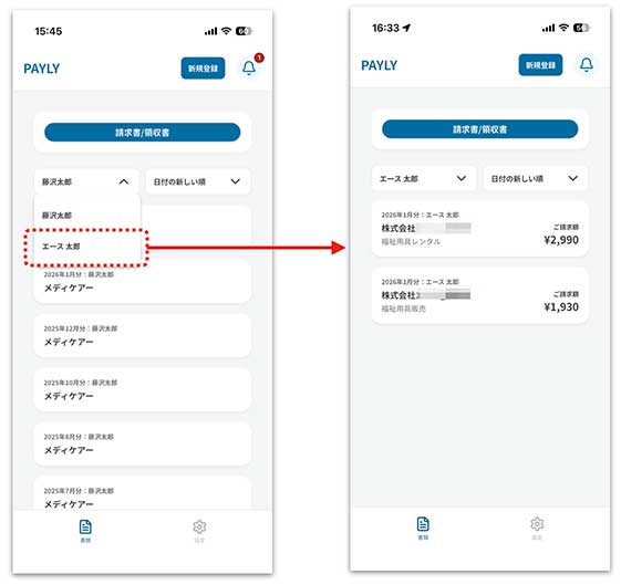 PAYLYに複数のユーザーを登録している場合、以下の手順でユーザーを切り替えることができます。